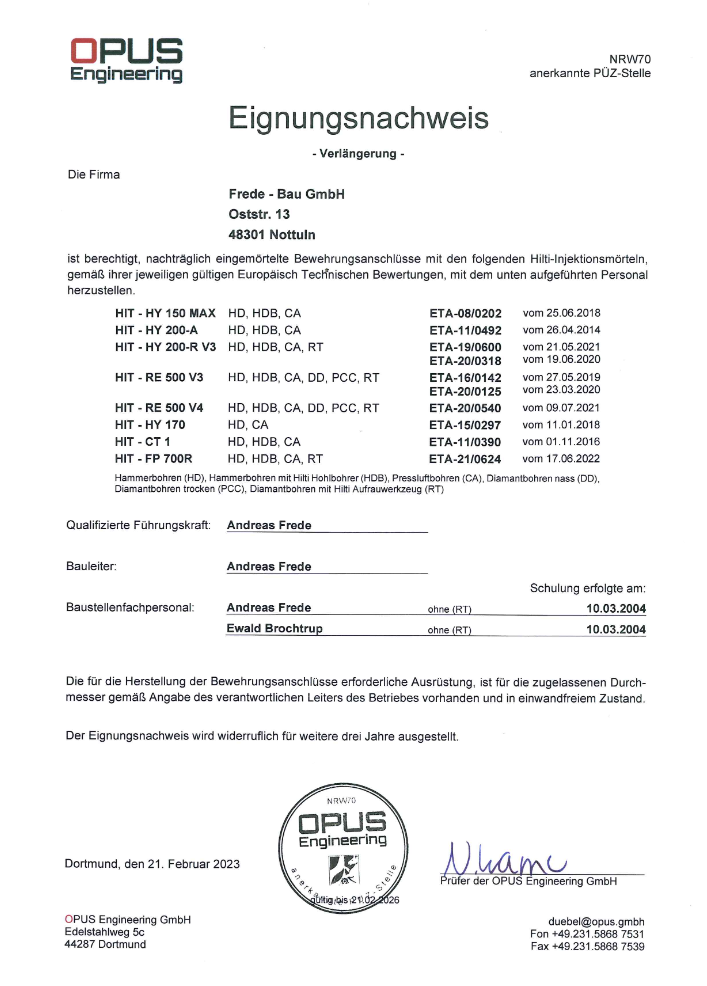 In der Baubranche spielen Präzision, Sicherheit und Verlässlichkeit eine tragende Rolle, daher legen wir großen Wert auf die Qualität unserer Arbeit. Um dies zu gewährleisten, sind wir als Unternehmen stets bemüht uns auf dem neuesten Stand zu halten. Die von uns abgelegten Zertifizierungen sind der sichtbare Beweis für unser Engagement, die höchsten Standards in jedem Projekt zu erfüllen.